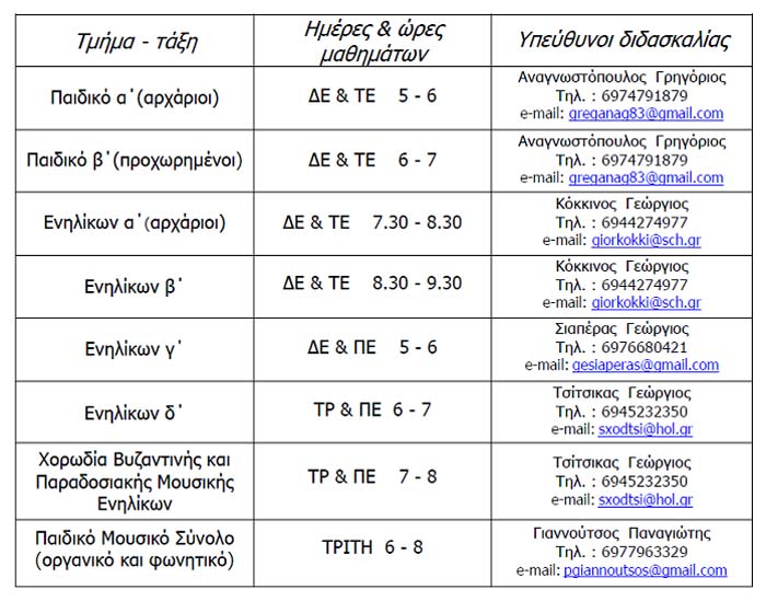 Το Πρόγραμμα των μαθημάτων έχει ως εξής: