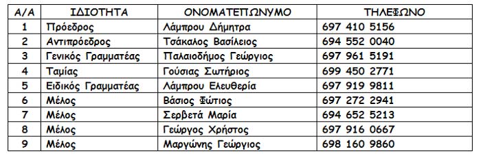 Το νεοεκλεγέν Διοικητικό Συμβούλιο στην πρώτη του συνεδρίαση, την Τετάρτη 23 Οκτωβρίου 2019, συγκροτήθηκε σε σώμα ως εξής: