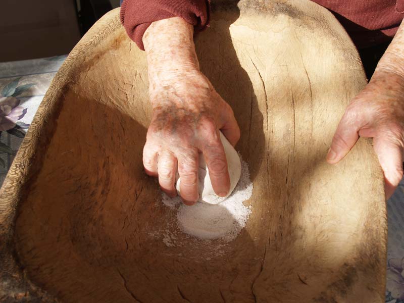 Αμυδρά θυμάμαι τη μητέρα μου, Γεωργία, να τρίβει το αλάτι στο ξύλινο σκαφίδι με μια ειδική άσπρη πέτρα. Όπως αφηγείται η ίδια: