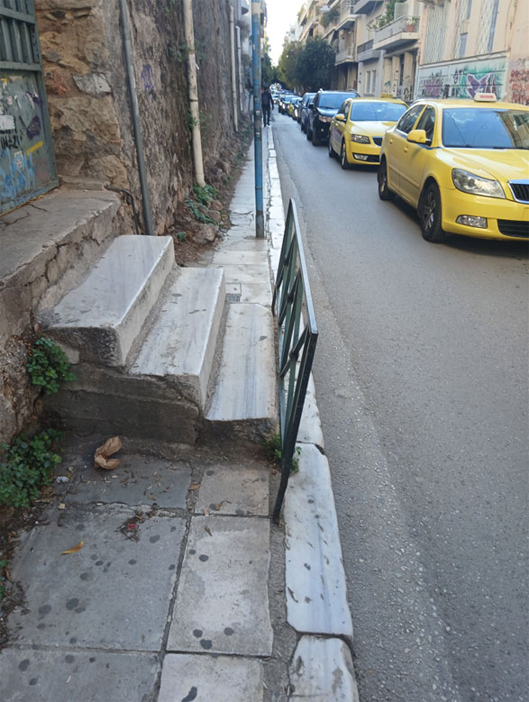 Το να περπατήσεις στο πεζοδρόμιο μιας πόλης, και ειδικά της Αθήνας, είναι από μόνο του μια πολλαπλή πρόκληση, ένας πραγματικός άθλος, αφού δεν ξέρεις ποιους από τους πάμπολλους και απρόβλεπτους κινδύνους θα αντιμετωπίσεις.