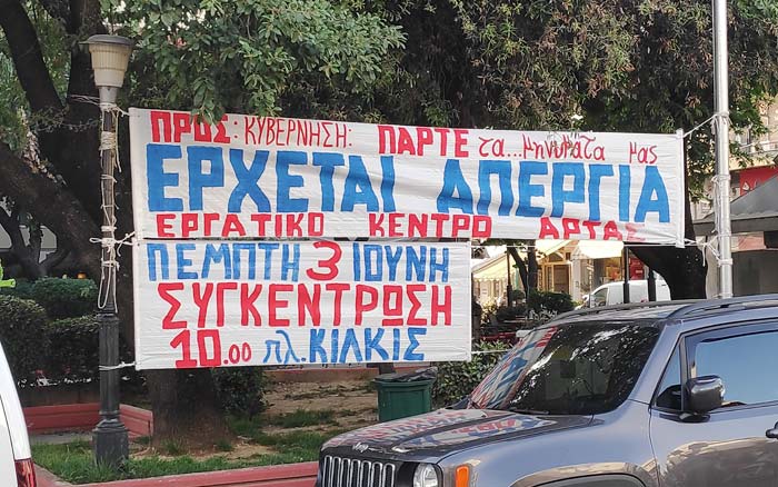 Το Εργατικό Κέντρο Άρτας με ανακοίνωση που εξέδωσε, απευθύνει κάλεσμα για συμμετοχή στην απεργία την Πέμπτη 3 Ιουνίου...
