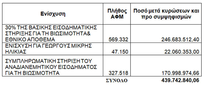 Ειδικότερα, αναγράφονται ανά κατηγορία των δικαιούχων τα ποσά στον πίνακα που ακολουθεί: