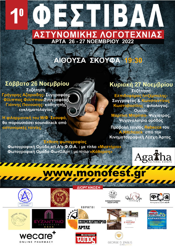 Το φεστιβάλ διεξάγεται σε συνεργασία με το Φεστιβάλ Αστυνομικής Λογοτεχνίας Αθηνών και την υπεύθυνη του κυρία Ιωάννα Πετρίδου και τελεί υπό την αιγίδα των: Δήμου Αρταίων και Εμπορικού Επιμελητηρίου Άρτας.