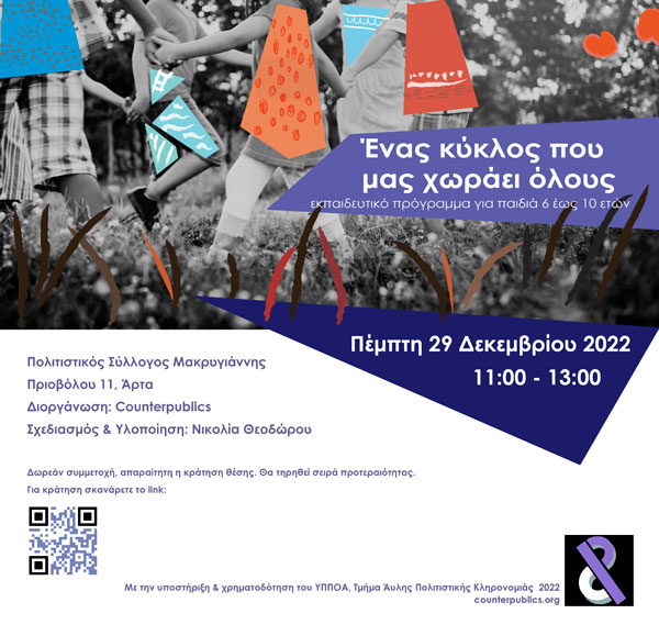 Το εργαστήριο υλοποιείται στο πλαίσιο του ερευνητικού έργου του Counterpublics «Η κυκλική κοινότητα - Ερευνητικές αναγνώσεις των δρώμενων «Κύκλες» και «Καγκελάρι» Ηπείρου».