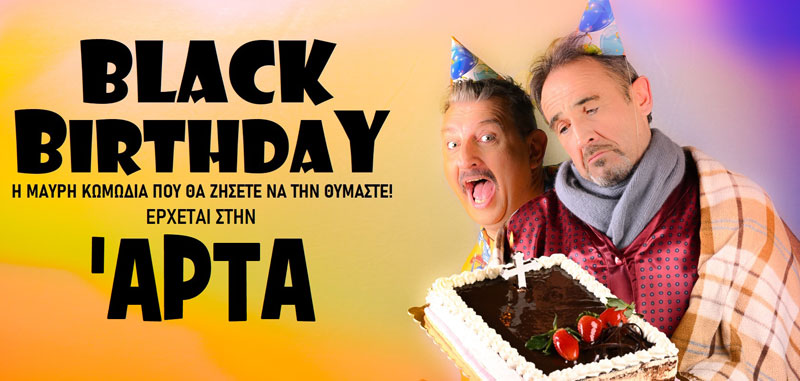 Για δύο μόνο παραστάσεις, παρουσιάζεται στην Άρτα το έργο «Black Birthday» από την Καλλιτεχνική Σκηνή Ηπείρου ΣΥΝΘΕΣΗ. Η ξέφρενη μαύρη κωμωδία που έγραψε ο Αρτινός συγγραφέας Κώστας Σταύρου (Επιστροφή στο χωριό), παρουσιάστηκε ήδη στα Ιωάννινα όπου πέτυχε αλλεπάλληλα sold out και απέσπασε εγκωμιαστικά σχόλια από τον τοπικό Τύπο. Το έργο αφορά σ’ έναν κατά φαντασίαν ασθενή ο οποίος, από παιδί, φοβάται ότι θα πεθάνει την ημέρα των 50ων του γενεθλίων. Μαζί του, την παραμονή των γενεθλίων του, όσο περιμένει τον… Χάρο, ο ανεκδιήγητος κουμπάρος του που αντιμετωπίζει την κατάσταση με πολύ ειρωνεία και… δολοφονικό χιούμορ.