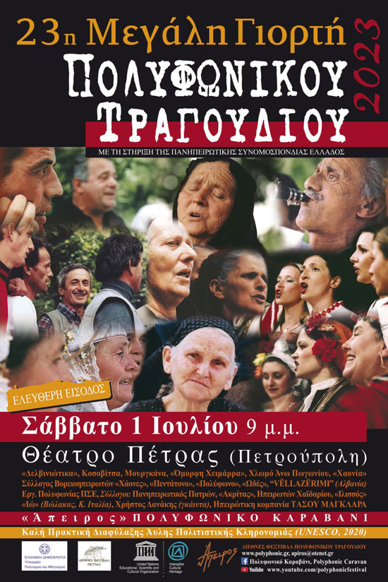 Η Μεγάλη Γιορτή Πολυφωνικού Τραγουδιού 2023 ολοκληρώνει τον τριετή γιορτασμό της παγκόσμιας αναγνώρισης του Πολυφωνικού Καραβανιού, με την εγγραφή του, μετ΄ επαίνων, στον διεθνή κατάλογο Καλών Πρακτικών Διαφύλαξης Άυλης Πολιτιστικής Κληρονομιάς της UNESCO, αποτελώντας την πρώτη και μόνη, μέχρι τώρα, εγγραφή από μεριάς της Ελλάδας και την, μόλις, 29η διαχρονικά, από τα 180 κράτη – μέρη της Σύμβασης της UNESCO! Η παγκόσμια αναγνώριση αντανακλά στο σύνολο της κοινότητας πολυφωνίας, στο ίδιο το Ηπειρώτικο Πολυφωνικό Τραγούδι. Στηρίζει και προβάλλει την συμβολή όλης της κοινότητας στη διαφύλαξη του Ηπειρώτικου Πολυφωνικού Τραγουδιού.