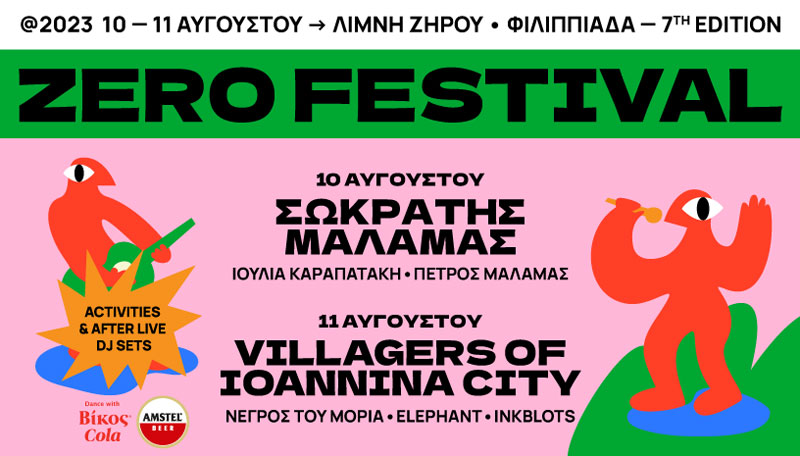 Το πολυαναμενόμενο 7ο Zero Festival επιστρέφει και υπόσχεται να είναι μια αξέχαστη εμπειρία για τους λάτρεις της μουσικής, τους λάτρεις της φύσης και όσους αναζητούν την περιπέτεια! Με φόντο τη Λίμνη Ζηρού που κόβει την ανάσα, το διήμερο φεστιβάλ θα πραγματοποιηθεί στις 10 και 11 Αυγούστου 2023, παρουσιάζοντας μια εκπληκτική σύνθεση από αγαπημένους καλλιτέχνες & ημερήσιες δράσεις.