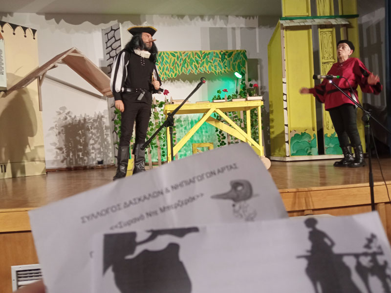 Υπάρχουν στιγμές που η Τέχνη ξεπερνά την απλή αναπαράσταση και μεταμορφώνεται σε ψυχική εμπειρία. Μια τέτοια σπάνια στιγμή πρόσφερε η θεατρική παράσταση "Συρανό ντε Μπερζεράκ" από τον Σύλλογο Δασκάλων Άρτας, μια κατάθεση ψυχής και συλλογικής δημιουργίας.