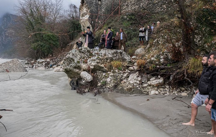 Αγιασμός των υδάτων στον χώρο του ιστορικού γεφυριού της Πλάκας