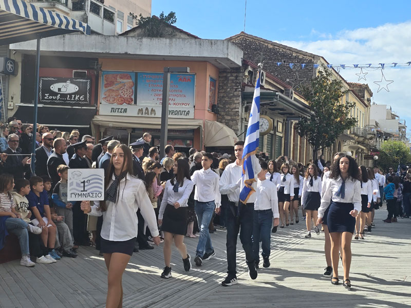 Στη συνέχεια, πραγματοποιήθηκε η καθιερωμένη μαθητική παρέλαση στο κέντρο της πόλης. Αντιπροσωπευτικά τμήματα μαθητών και μαθητριών από όλα τα σχολεία του Δήμου Αρταίων, καθώς και τμήματα πολιτιστικών συλλόγων και προσκόπων, παρέλασαν μπροστά από τους επισήμους, συνοδεία της φιλαρμονικής ορχήστρας του Μουσικοφιλολογικού Συλλόγου «Ο Σκουφάς».