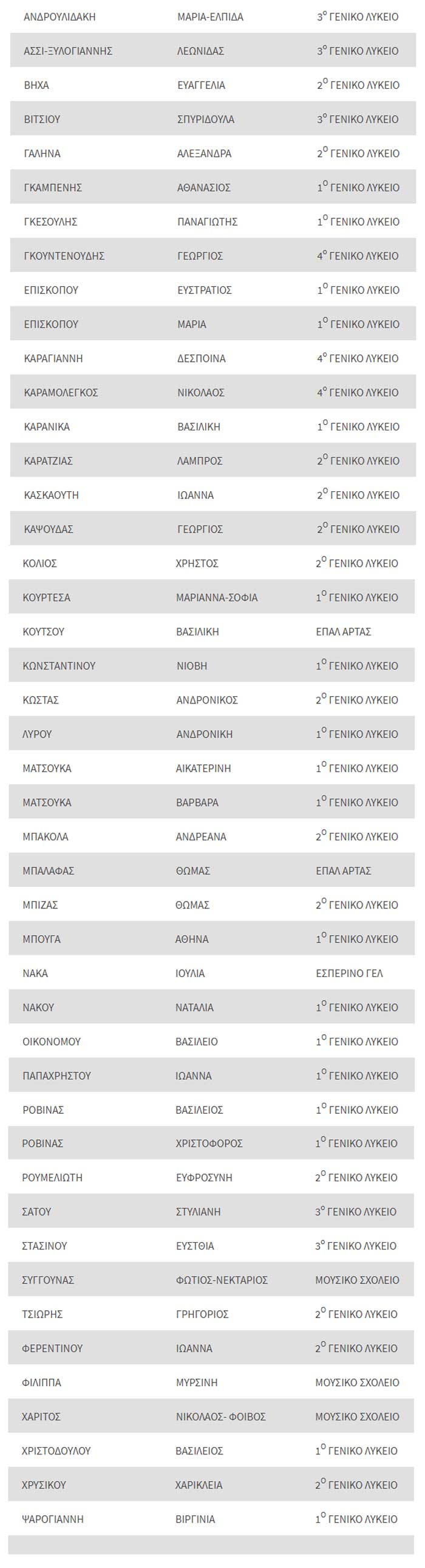 Για τρίτη συνεχόμενη χρονιά ο Δήμος Αρταίων βράβευσε τους μαθητές και τις μαθήτριες των Λυκείων του Δήμου που συγκέντρωσαν βαθμό πρόσβασης άνω των 17.000 μορίων και εισήχθησαν την περυσινή χρονιά σε Σχολές της Τριτοβάθμιας Εκπαίδευσης.