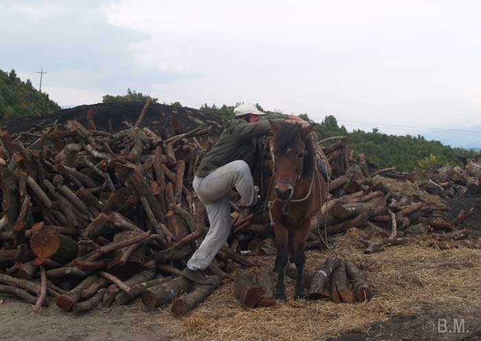 «Έβαναν φουτιά στου λόγκου, αυτά τα δέντρα καίουνταν κι γένουνταν καψάλις. Καίουνταν μαναχά τα φύλλα κι πάινι παρέκεια (πιο πέρα) η φουτιά… Έφκιαναν 2-3 χρόνια καψάλια, όσου ήταν τα λόγκια κι οι κλαρισιές (κόψιμο απ’ τη βάση τη μία χρονιά και τα πουλούσαν την επόμενη). Τα καψάλια ήταν πιο λιανά, οι κλαρ’σιές πιο χουντρά… Οι τσακνουλόισσις έφκιαναν τα λιανά τα ξύλα, τα ‘φκιαναν διμάτια κι τα πούλαγαν στ’ν Άρτα… Πάνιγαν ζαλιγκουμένις (πήγαιναν φορτωμένες)… Δρόμους πουλύς… Οι ψυχούλις… Τώρα ου κόσμους δε μπουρεί να δρασκιλίσει ιδώ κι ικεία… Όταν γύρναγαν του μισ’μέρι, μάζουναν πουρτουκάλια πισμένα στα χαντάκια, απ’ τα’ν παγουνιά… Αλλά πού να ηύρισκις τότι πουρτουκάλια… Καρτέρ’γαμαν κι ιμείς στου μύλου (είχαν νερόμυλο οι παππούδες μου), να μας δώκουν κάνα πουρτουκάλι να φάμι…».