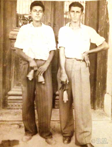 Μερικές φορές, οι νεαροί ξυλοφόροι έπαιρναν και κάτι που ήθελαν πολύ, π.χ. κουδούνια για τα γιδοπρόβατα. Στην ασπρόμαυρη φωτογραφία (του 1955) απεικονίζεται δεξιά ο πατέρας μου κι αριστερά ο αδερφός του, ο μακαρίτης θείος Πέτρος. Και οι δύο κρατάνε «κύπρια», δηλ. κουδούνια για τα γίδια, μιας και ήταν το μεράκι του θείου μου.