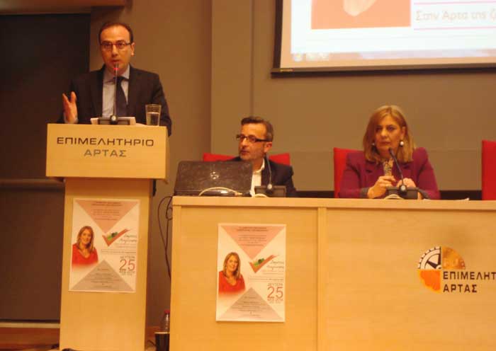 Πλήθος κόσμου παραβρέθηκε στην εκδήλωση που έλαβε χώρα τη Δευτέρα το απόγευμα στο Επιμελητήριο Άρτας από τη «Δημοτική Αναγέννηση» με επικεφαλής την υποψήφια δήμαρχο Αρταίων Τζένη Ταπραντζή-Κοίλια. Το τσουχτερό κρύο και οι χαμηλές θερμοκρασίες, όπως αποδείχτηκε, δεν εμπόδισαν τους δημότες της πόλης μας να δώσουν το παρών στη συγκεκριμένη εκδήλωση με θέμα τον «Κλεισθένη», αφού και οι δύο αίθουσες εκδηλώσεων του Επιμελητηρίου ήταν ασφυκτικά γεμάτες από κόσμο. Το παρών έδωσαν, ως εννοείται, και οι υποψήφιοι δημοτικοί σύμβουλοι της παράταξης «Δημοτική Αναγέννηση». Κατά την έναρξη της εκδήλωσης, χαιρετισμό απηύθυνε η υποψήφια δήμαρχος Αρταίων Τζένη Ταπραντζή-Κοίλια, ενώ στη συνέχεια το λόγο πήραν η υπουργός Προστασίας του Πολίτη και βουλευτής Όλγα Γεροβασίλη, ο βουλευτής Βασίλης Τσίρκας, ο πρώην δήμαρχος Χερσονήσου Ηρακλείου και βουλευτής Σπύρος Δανέλλης και ο επί σειρά τετραετιών δήμαρχος Ιωαννίνων Φίλιος Φίλιππος. Και οι πέντε ομιλητές εστίασαν στα πλεονεκτήματα που φέρνει το νέο νομοθετικό πλαίσιο του «Κλεισθένη», επικροτώντας την απόφαση της κυβέρνησης για αλλαγή προς κάτι νέο, ορθότερο και πιο δημοκρατικό με την εφαρμογή νέων ρυθμίσεων στον εκλογικό νόμο που έχουν να προσφέρουν πολλά περισσότερα στην ελληνική κοινωνία απ’ ό,τι οι βαλτωμένες πρακτικές του παρελθόντος.