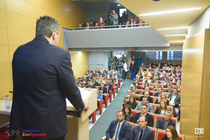 Έχουμε συνηθίσει να μιλάμε με το έργο μας. Και ό, τι δεσμευόμαστε να το τηρούμε και ακόμη παραπάνω! Στις 15 Φεβρουαρίου φέτος στην αίθουσα του «ΣΚΟΥΦΑ», όταν κάναμε τον δημόσιο απολογισμό των πεπραγμένων μας στην πρώτη μας θητεία στο Δήμο, είχαμε παρουσιάσει και είχαν διαπιστώσει όλοι, ότι έχουμε τηρήσει το προεκλογικό μας πρόγραμμα σε ποσοστό άνω του 95%. Μάλιστα, κάναμε σε πολλές περιπτώσεις και περισσότερα από αυτά τα οποία δεσμευθήκαμε. Πλέον, ερχόμαστε να παρουσιάσουμε το νέο μας πρόγραμμα, το οποίο να είστε βέβαιοι και να είναι και οι Αρτινοί βέβαιοι, ότι θα τηρήσουμε ξανά.Στις εκλογές του Μαΐου υπάρχει ένα δίλημμα: Ή επιλέγουμε έναν σίγουρο και ασφαλή δρόμο, όπως είναι ο συνδυασμός μας ή κάνουμε πειραματισμούς ή επιλέγουμε δοκιμασμένες και αποτυχημένες συνταγές που διοίκησαν το Δήμο ή επιλέγουμε κομματικούς …σωτήρες ή επιλέγουμε εκείνους που ελπίζουν να εξαργυρώσουν τη συμμετοχή τους στα κοινά με μια καρέκλα αντιδημάρχου…