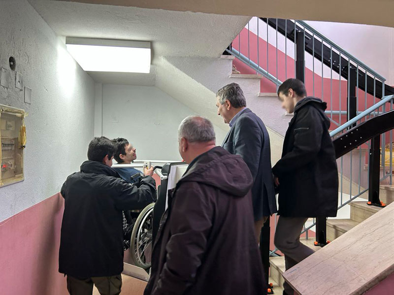 Η πλατφόρμα-ανελκυστήρας σκάλας για άτομα με ειδικές ανάγκες που τοποθετήθηκε είναι ένα μηχάνημα προσαρμοσμένο στις διαστάσεις της σκάλας, που μπορεί να φιλοξενήσει ολόκληρο το καρότσι και να το μεταφέρει σε όροφο, με όλα τα μέτρα ασφαλούς χρήσης και προστασίας.