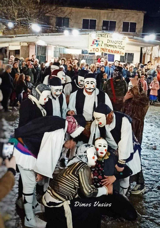 • Το μοναδικό αυτό «Γαϊτανάκι», το οποίο τιμήθηκε το 2003 από τη λαογράφο και μουσικό Δόμνα Σαμίου στο Μέγαρο Μουσικής Θεσσαλονίκης και το 1998 έλαβε το πρώτο βραβείο στο Φεστιβάλ Θεσσαλονίκης μέσω της συμμετοχής του στο ντοκιμαντέρ του αείμνηστου σκηνοθέτη Στράτου Στασινού, φορά τις προσωπίδες του και στήνει γλέντι σε όλο το χωριό μέχρι το απόγευμα, με αποκορύφωμα το κόψιμο της κορδέλας.