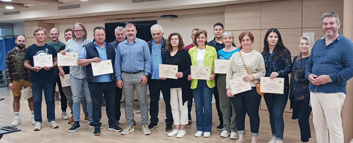 Στην αίθουσα του Επιμελητηρίου Άρτας, το απόγευμα της 29ης Μαΐου 2025, ολοκληρώθηκε επίσημα η υλοποίηση του επιδοτούμενου προγράμματος κατάρτισης της ΔΥΠΑ στο κλάδεμα δενδρωδών καλλιεργειών στο Ν. Άρτας και δόθηκαν στους καταρτιζόμενους τα πιστοποιητικά επαγγελματικής κατάρτισης. Τα πιστοποιητικά έδωσαν, εμφανώς ικανοποιημένοι από το γόνιμο αποτέλεσμα υλοποίησης του προγράμματος, ο Ά Αντιπρόεδρος του Επιμελητηρίου Άρτας, Φώτιος Φώτης, και ο Διευθυντής του Κέντρου Δια Βίου Μάθησης (ΚΔΒΜ) Ιωαννίνων της ΔΥΠΑ, Αργύρης Κύρκος. Επιπροσθέτως, να σημειωθεί ότι το παρών στην εκδήλωση έδωσαν η Υποδιευθύντρια του Κέντρου Δια Βίου Μάθησης (ΚΔΒΜ) Ιωαννίνων της ΔΥΠΑ, Άννα Τσόγκα, και ο Γεώργιος Λαδάς, συνεργάτης του ΚΔΒΜ Ιωαννίνων της ΔΥΠΑ.
