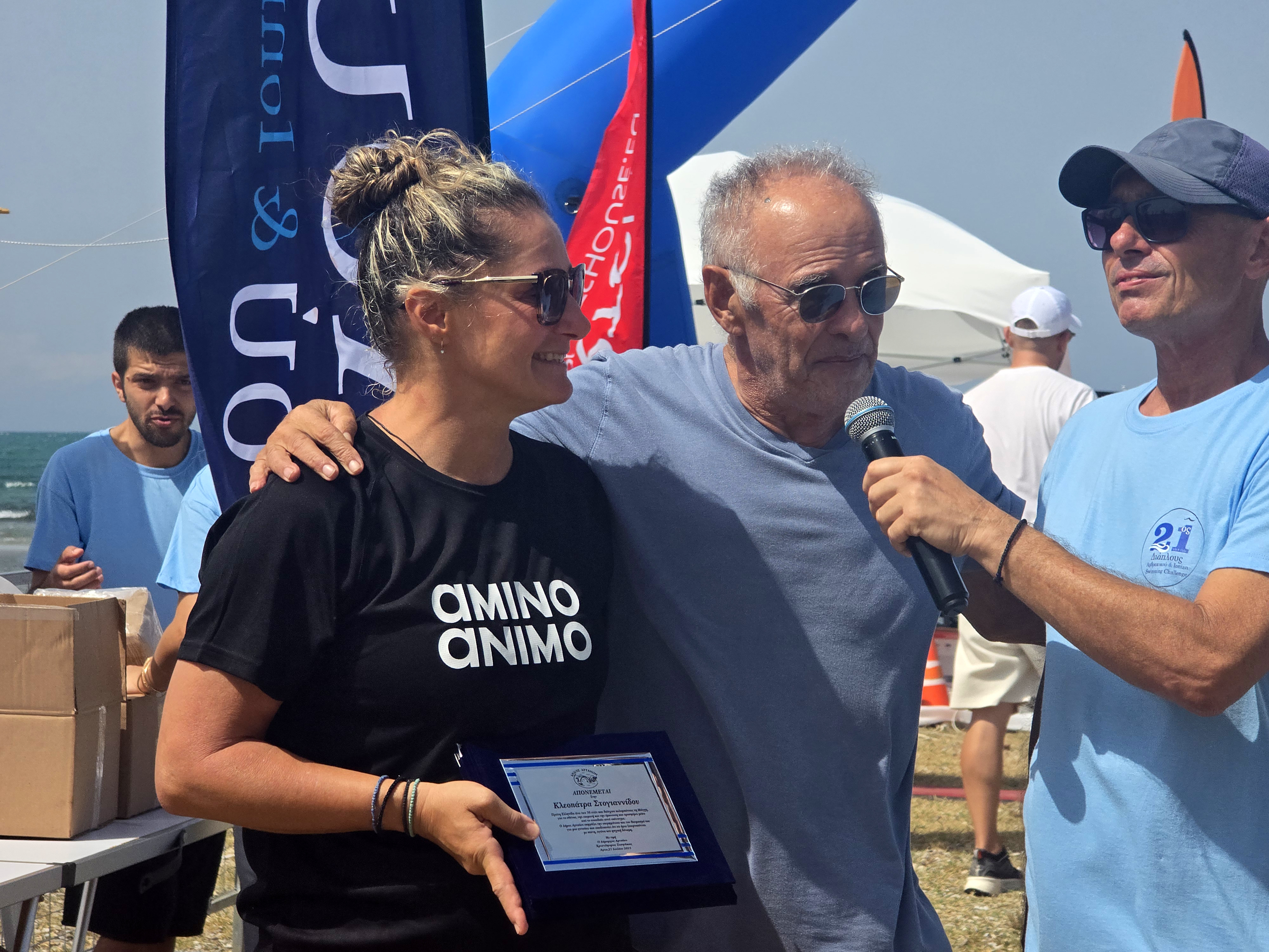 Μετά την ολοκλήρωση του αγώνα του Κολυμβητικού Διάπλου, οι νικητές και οι νικήτριες τιμήθηκαν με αναμνηστικά κύπελλα.