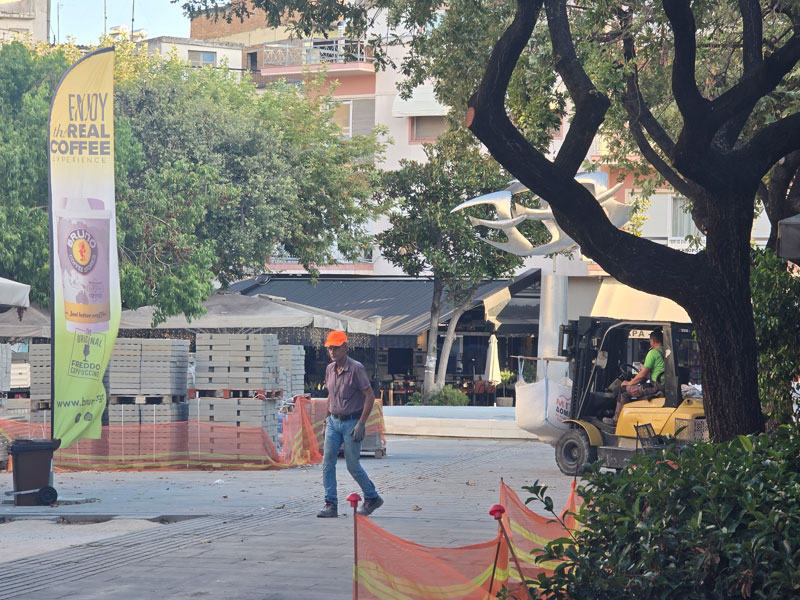 Οι εργασίες συνεχίζονται με αποκαταστάσεις στην πλατεία Εθνικής Αντίστασης καθώς και στην οδό Ψαρών, όπου η πλακόστρωση βρίσκεται ήδη σε προχωρημένο στάδιο. Στόχος είναι η ολοκλήρωση αυτών των τμημάτων πριν τη διακοπή των εργασιών λόγω των θερινών αδειών του Δεκαπενταύγουστου.
