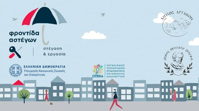 Ο Δήμος Αρταίων ενισχύει την κοινωνική του πολιτική, επεκτείνοντας τις δράσεις του με επίκεντρο τη φροντίδα των πιο ευάλωτων συμπολιτών μας. Στόχος είναι η συμβολή στην αντιμετώπιση του φαινομένου της έλλειψης στέγης και των επισφαλών συνθηκών διαβίωσης. Η συμμετοχή στο Πρόγραμμα «Στέγαση και Εργασία για τους Άστεγους ΙΙΙ», στο πλαίσιο διαδημοτικής συνεργασίας με τον Δήμο Νικολάου Σκουφά και με διαχειριστή φορέα την Εταιρεία Ψυχοκοινωνικής Έρευνας και Παρέμβασης – Ε.Ψ.Ε.Π., εγκρίθηκε από το Υπουργείο Κοινωνικής Συνοχής και Οικογένειας. Η έναρξη της υλοποίησης αναμένεται τον Σεπτέμβριο.