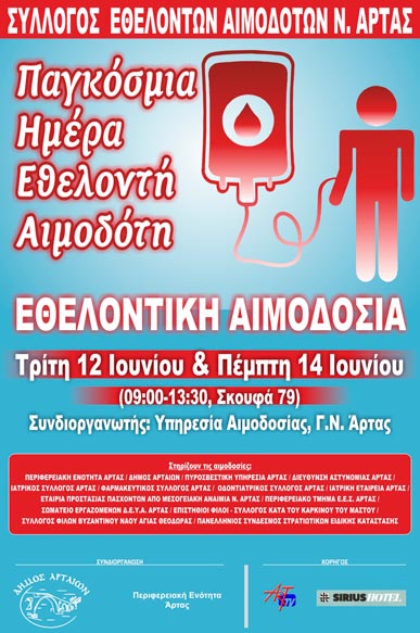 Ο Σύλλογος Εθελοντών Αιμοδοτών Ν. Άρτας για άλλη μια χρονιά διοργανώνει εκδηλώσεις με τη συμμετοχή όλων των τοπικών φορέων και της κοινωνίας: