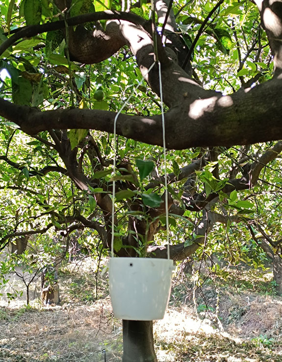Η Δ/νση Αγροτικής Οικονομίας και Κτηνιατρικής της Περιφερειακής Ενότητας Άρτας σε συνεργασία με το Μπενάκειο Φυτοπαθολογικό Ινστιτούτο εγκατέστησε σήμερα, σε έξι επιλεγμένες θέσεις στον κάμπο της Άρτας (που περικλείουν κυκλικά ένα τμήμα του κάμπου), όπου καλλιεργούνται εκτάσεις με εσπεριδοειδή, γλάστρες νεραντζιάς στα φύλλα των οποίων υπάρχουν τα ωφέλιμα έντομα (είδος Encarsia smithi Silvestri) που εισήχθησαν από το Βιετνάμ και παρασιτούν τις προνύμφες του μαύρου ακανθώδη αλευρώδη Aleurocanthus spiniferus.