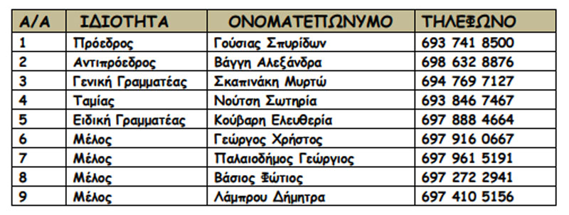 Το νεοεκλεγέν Διοικητικό Συμβούλιο στην πρώτη του συνεδρίαση, την Τρίτη 18 Ιουνίου 2024, συγκροτήθηκε σε σώμα ως εξής: