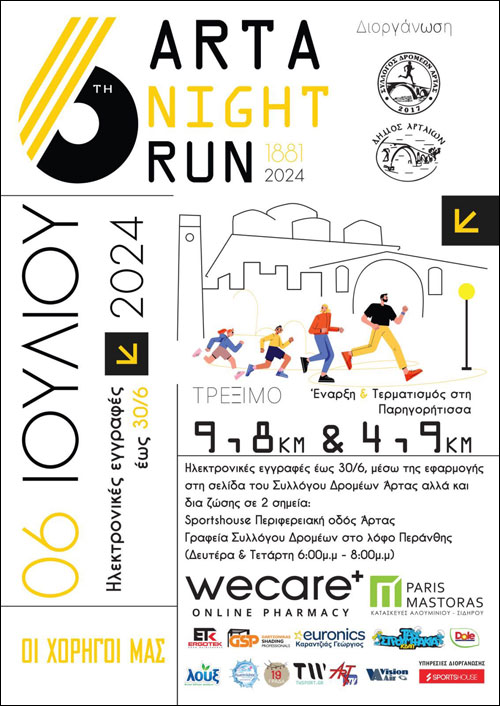 Το Σάββατο 6 Ιουλίου 2024, η Άρτα θα ζήσει μια μαγική βραδιά με δράση, καθώς ο Δήμος Αρταίων και ο Σύλλογος Δρομέων Άρτας, διοργανώνουν τον 6ο Νυχτερινό Αγώνα Δρόμου «Arta Night Run 1881». Αυτή η ξεχωριστή αθλητική εκδήλωση συνδυάζει την ομορφιά της νύχτας με την ιστορία και την παράδοση της πόλης, τιμώντας την απελευθέρωσή της, την 24η Ιουνίου 1881. Δρομείς κάθε ηλικίας και επιπέδου, από επαγγελματίες αθλητές μέχρι ερασιτέχνες και λάτρεις του τρεξίματος, θα έχουν την ευκαιρία να διασχίσουν τους ιστορικούς δρόμους της Άρτας. Με εκκίνηση από την πλατεία Σκουφά στις 21:00, η νύχτα μετατρέπεται σε φωτεινό σκηνικό και υπόσχεται ενέργεια και εορταστική διάθεση.
