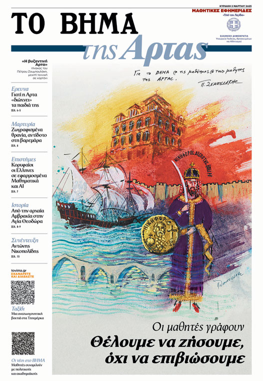 Με «ΤΟ ΒΗΜΑ της Άρτας» οι Μαθητικές Εφημερίδες συμπληρώνουν τις πενήντα εκδόσεις. Η ένθετη εφημερίδα που κυκλοφορεί μία φορά το μήνα με «ΤΟ ΒΗΜΑ» περιέχει κείμενα που γράφουν οι μαθητές και οι μαθήτριες σχολείων από διαφορετικές περιοχές της Ελλάδας. Πενήντα ομάδες νέων παιδιών εμπιστεύτηκαν στο «ΒΗΜΑ» τις αγωνίες τους, τις σκέψεις τους, τις ιστορίες της πόλης τους και τον δημοσιογραφικό τους ενθουσιασμό, πενήντα μαθητικά φύλλα εκδόθηκαν και πενήντα πίνακες γνωστών εικαστικών που συνεργάζονται με τον θεσμό των μαθητικών εφημερίδων φιλοτεχνήθηκαν για να στολίσουν τα πρωτοσέλιδα.