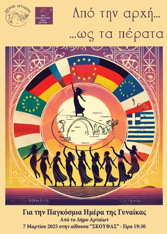 Με αφορμή την Παγκόσμια Ημέρα της Γυναίκας, ο Δήμος Αρταίων διοργανώνει εκδήλωση την Παρασκευή 7 Μαρτίου 2025, στις 19:30, στην αίθουσα του Μ/Φ Συλλόγου Άρτας “Ο Σκουφάς”.