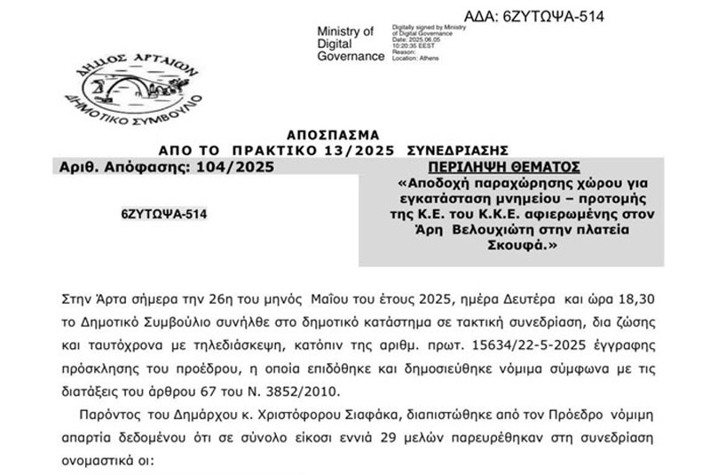 Η σχετική απόφαση ελήφθη με εισήγηση της νυν Δημοτικής Αρχής στις 26 Μαΐου 2025 (Απόφαση ΔΣ 104/2025).