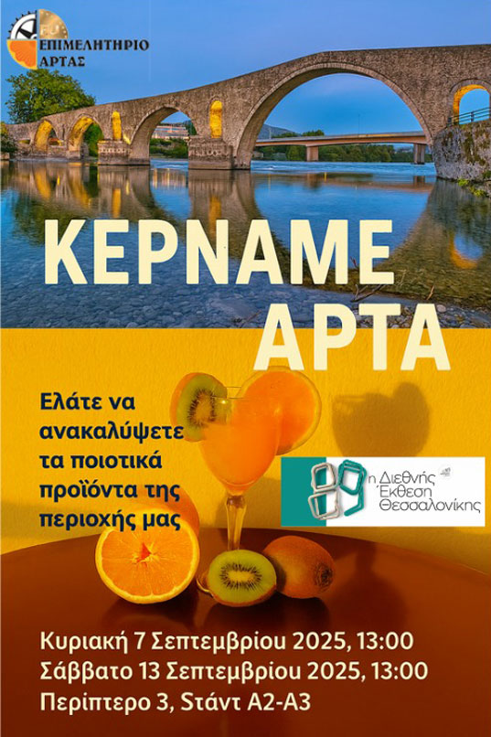 Το κοινό μπορεί να επισκεφθεί το Περίπτερο 3, Stand A2-Α3, για να δοκιμάσει, να εμπνευστεί και να ανακαλύψει τα μοναδικά προϊόντα της Άρτας.
