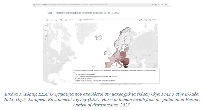 • European Environment Agency (EEA):Harm to human health from air pollution in Europe: burden of disease status, 2025 (δεδομένα έτους 2023). https://www.eea.europa.eu/en/analysis/publications/harm-to-human-health-from-air-pollution-burden-of-disease-status-2025