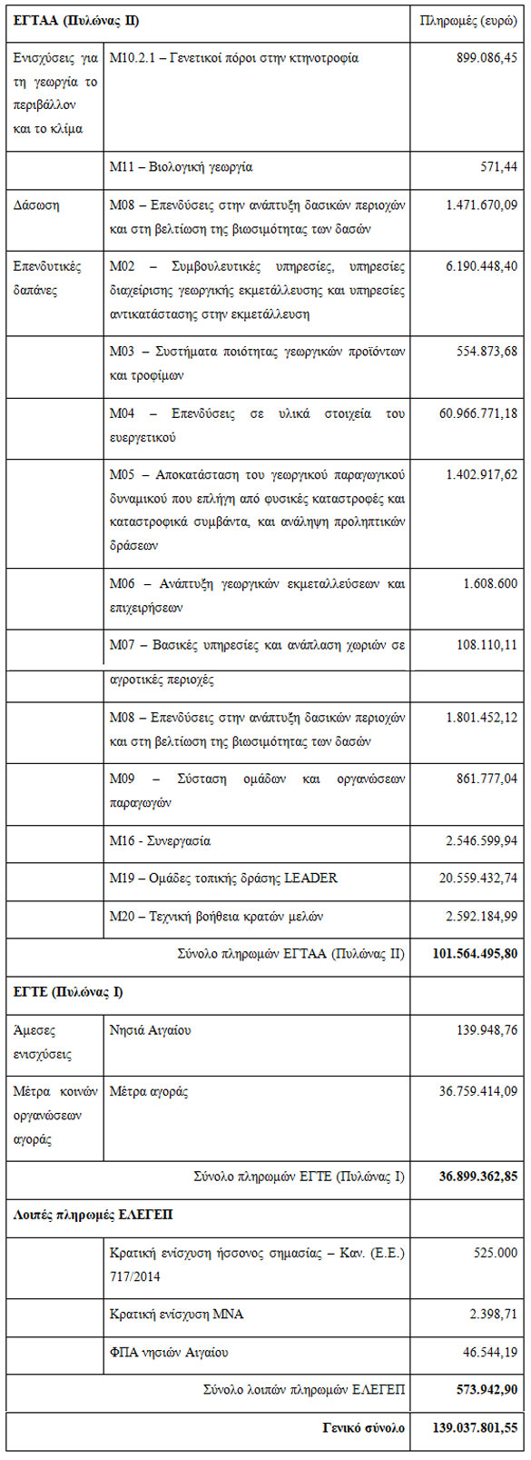 Έτσι το γενικό άθροισμα των ανωτέρω πληρωμών από 1/8/2024 έως σήμερα είναι 143.281.823,75 ευρώ.