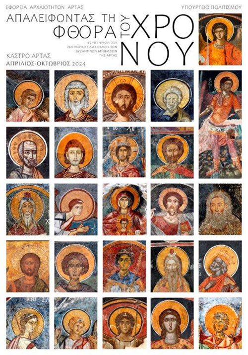 Η Εφορεία Αρχαιοτήτων Άρτας σας προσκαλεί στα εγκαίνια της περιοδικής έκθεσης «ΑΠΑΛΕΙΦΟΝΤΑΣ ΤΗ ΦΘΟΡΑ ΤΟΥ ΧΡΟΝΟΥ. Η συντήρηση του ζωγραφικού διακόσμου των βυζαντινών μνημείων της Άρτας», το Σάββατο του Λαζάρου, 27 Απριλίου 2024, στις 18:30 στο Κάστρο της Άρτας.