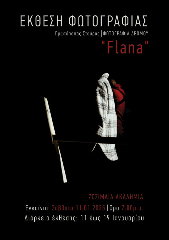 Στις 11 Ιανουαρίου 2025, η Ζωσιμαία Παιδαγωγική Ακαδημία φιλοξενεί την έκθεση φωτογραφίας του καταξιωμένου φωτογράφου Σταύρου Πρωτόπαπα με τίτλο “Flana”.