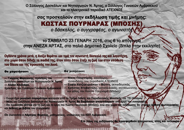 Περισσότερα...Το Σάββατο 23 Ιανουαρίου 2016, στις 6 το απόγευμα, στην Ανέζα...