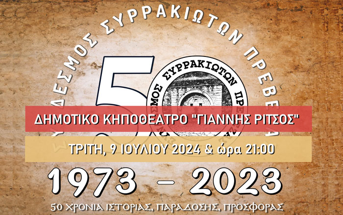 Ο Σύνδεσμος Συρρακιωτών Πρέβεζας σας προσκαλεί στην ετήσια μουσικοχορευτική εκδήλωση η οποία θα πραγματοποιηθεί...