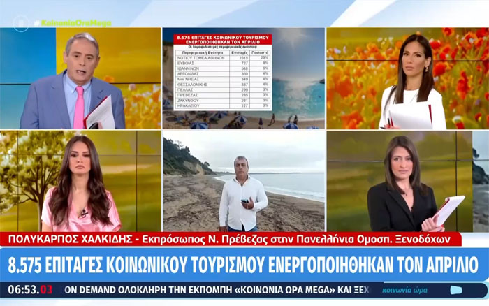 Στο MEGA TV η Πρέβεζα για τον Κοινωνικό Τουρισμό