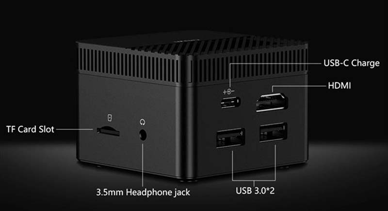 To mini PC αυτό μπορεί να συνδεθεί με πολλά περιφερειακά με τη βοήθεια δύο θυρών USB 3.0 Type A και μίας ακόμη θύρας USB Type C. Παράλληλα, υπάρχει θύρα HDMI, ένα microSD card reader και βύσμα υποδοχής ακουστικών για την μουσική και τη σύνδεση με ηχεία.
