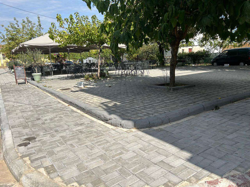 • την πλακόστρωση του κοινοχρήστου χώρου πίσω από τα καφενεία της κεντρικής πλατείας,