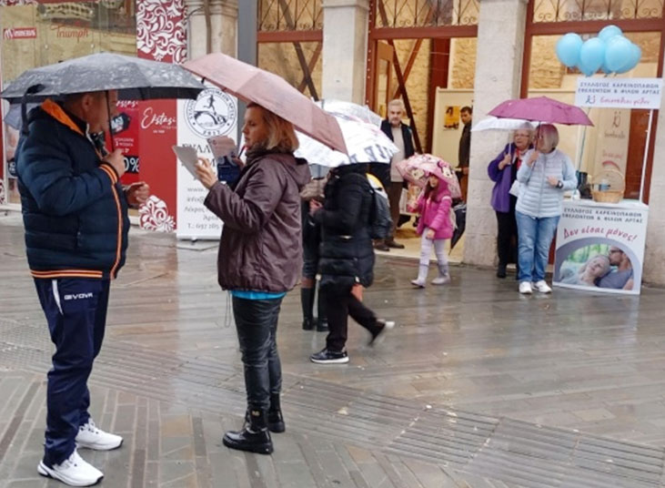 Παρά τη συνεχή βροχή, η δράση είχε ζωντάνια και μεγάλη ανταπόκριση. Οι εθελοντές/ντριές του Συλλόγου μοίρασαν ενημερωτικό υλικό και γαλάζιες κορδέλες σε περαστικούς, ενώ ο εθελοντής κουρέας Άγγελος Πλιάτσικας ξύριζε αφιλοκερδώς όσους είχαν αφήσει μουστάκι για τη συμμετοχή στην καμπάνια.