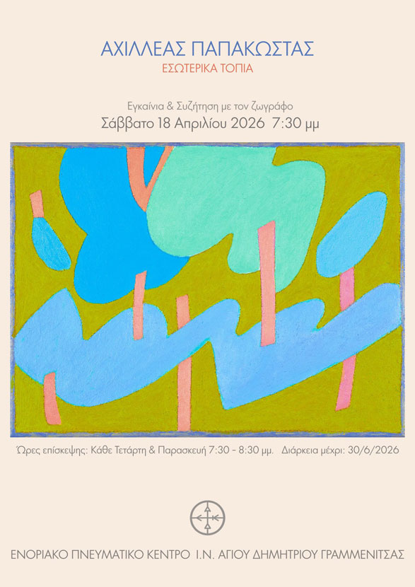 Έκθεση ζωγραφικής του καλλιτέχνη Αχιλλέα Παπακώστα με τίτλο «ΕΣΩΤΕΡΙΚΑ ΤΟΠΙΑ» θα φιλοξενηθεί στο Ενοριακό – Πνευματικό Κέντρο του Ι.Ν. Αγίου Δημητρίου Γραμμενίτσας.