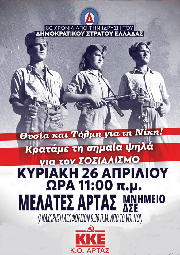 Οι μαχητές και οι μαχήτριες του Δ.Σ.Ε., συμμετείχαν στην μοναδική περίοδο της Ελληνικής ιστορίας, που τέθηκε σε αμφισβήτηση η εξουσία του κεφαλαίου, που αμφισβητήθηκε έμπρακτα το δικαίωμα της αστικής τάξης να εκμεταλλεύεται τη συντριπτική πλειοψηφία της κοινωνίας. Η ιστορία του Αρχηγείου Τζουμέρκων του Δ.Σ.Ε., είναι ιστορία αυτής της αμφισβήτησης, που τροφοδότησε τις επερχόμενες γενιές με υποδείγματα αυτοθυσίας και αγώνα, με πλούσια επαναστατική πείρα. Ο ηρωικός αγώνας τους, ξεσκέπασε το κάλπικο της αστικής δημοκρατίας. Ανέδειξε το ανέφικτο μιας φιλολαϊκής προοπτικής δίχως την ανατροπή του καπιταλισμού. Δίδαξε την εργατική τάξη και τα καταπιεζόμενα στρώματα ότι η διέξοδος τους είναι ο μονόδρομος του αγώνα με όλα τα μέσα για την κατάκτηση του σοσιαλισμού, ακόμα και κάτω από τις δυσκολότερες συνθήκες».