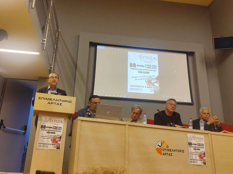 Με ιδιαίτερη επιτυχία πραγματοποιήθηκε το βράδυ της Παρασκευής 9 Μαΐου 2025 η εκδήλωση-αφιέρωμα, που διοργάνωσε η Νομαρχιακή Επιτροπή ΣΥΡΙΖΑ-Προοδευτική Συμμαχία Άρτας, τιμώντας την Ημέρα της Αντιφασιστικής Νίκης των Λαών.