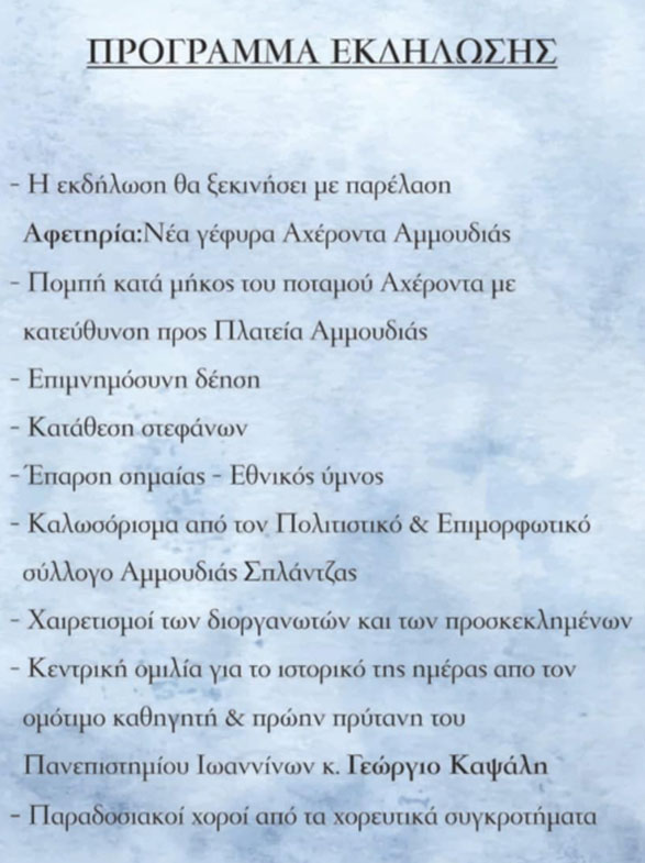 Το Σάββατο 5 Ιουλίου 2025 στις 19:30 ο Πολιτιστικός και Επιμορφωτικός Σύλλογος Αμμουδιάς Σπλάντζας με την Εταιρεία Βυζαντινών Μελετών Πρεβέζης και τον Όμιλο για την Unesco Πρέβεζας συνδιοργανώνουν Ιστορική Εκδήλωση Τιμής και Μνήμης στην πλατεία Αμμουδιάς Πρέβεζας.