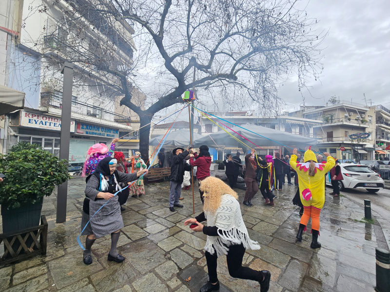 Ξεχωριστή νότα έδωσε το χορευτικό τμήμα του ΚΑΠΗ, το οποίο «έπλεξε» και χόρεψε το παραδοσιακό γαϊτανάκι, αναβιώνοντας ένα από τα πιο όμορφα Αποκριάτικα έθιμα. Τραγούδια, χορός και γέλια γέμισαν την αίθουσα και την πλατεία με τους χορευτές να διασκεδάζουν με την ψυχή τους.