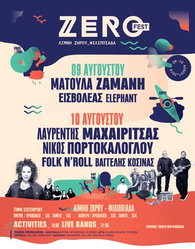Το ZERO festival κερδίζει καρδιές κάθε χρόνο στη λίμνη Ζηρού Φιλιππιάδας και είναι πλέον σημείο αναφοράς για τα πολιτιστικά δρώμενα της Βορειοδυτικής Ελλάδας και της ευρύτερης περιοχής. Κάθε χρόνο προσελκύει κοινό απ’όλη την Ελλάδα με ανησυχίες, που θέλει να ανακαλύψει τον κρυμμένο θησαυρό της λίμνης, τις δραστηριότητες που λαμβάνουν χώρα κατά την διάρκεια της ημέρας και να το συνδυάσει με υπέροχα μουσικά ακούσματα με καταξιωμένα καλλιτεχνικά σχήματα αλλά και νέες μπάντες.