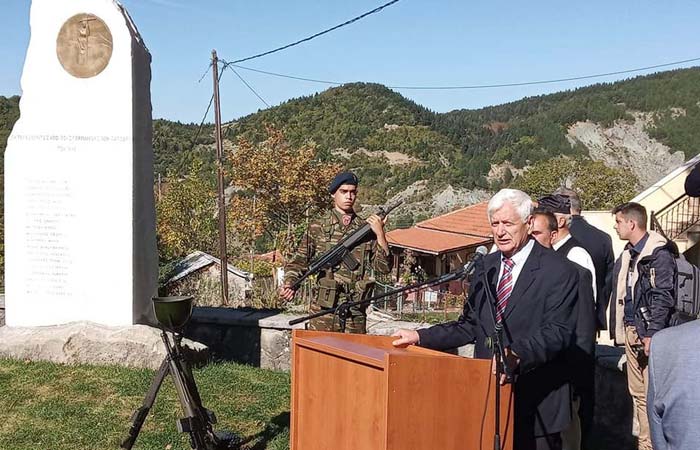 Περιποιεί μεγάλη τιμή για εμάς, η παρουσία της Αυτού Εξοχότητας του Προέδρου της Δημοκρατίας, σήμερα εδώ, προκειμένου να αποδώσουμε όλοι μαζί τις οφειλόμενες τιμές στους εκτελεσθέντες σε αυτόν εδώ τον τόπο, από τα Ναζιστικά στρατεύματα κατοχής τον Οκτώβριο του 1943.